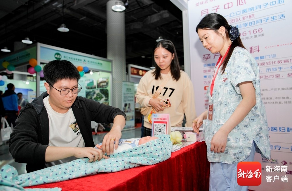 在海口市妇幼保健院展位,该院产科主任许莉详细讲解了孕期各阶段的需要注意的几点。“孕早期要重点观察是不是有流产迹象,孕中期要科学控制体重增长,孕晚期需做好分娩心理建设等。”她的讲解让准父母们频频点头记录。